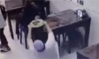 小飯店服務(wù)員上菜滑倒
